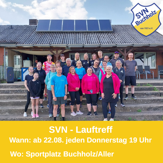 Laufen macht Spaß! Gemeinsam laufen macht noch mehr Spaß! Daher gründet der SVN Buchholz nun einen Lauftreff. Immer donnerstags treffen sich um 19 Uhr Laufbegeisterte auf dem Sportplatz in Buchholz, um von dort aus gemeinsam eine Runde zu laufen. Der erste Termin hierfür ist der 22.08.2024.