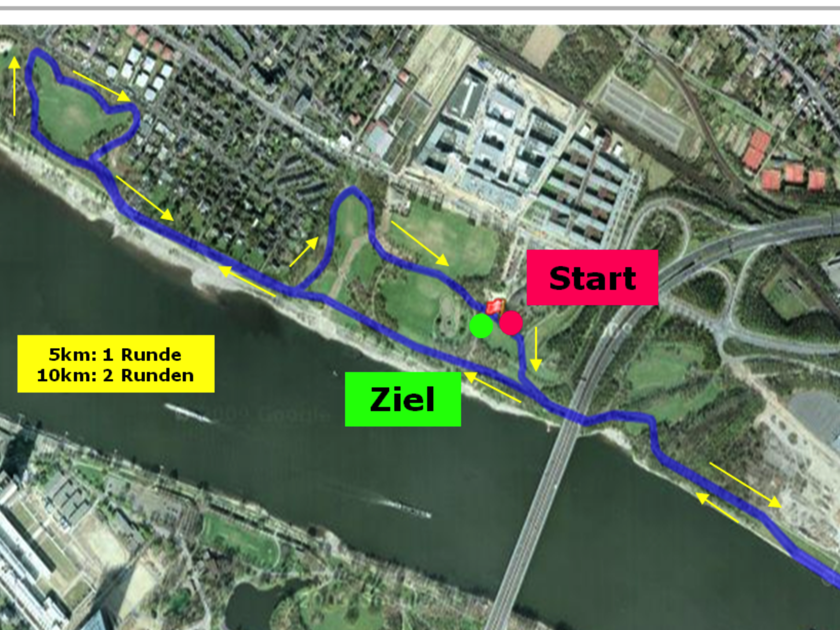 Landgrabenweg 150 – direkt an der Südbrücke Start/Ziel ist am „Haribo-Schiff“ in der Beueler Rheinaue. Das „Haribo-Schiff“ ist unmittelbar